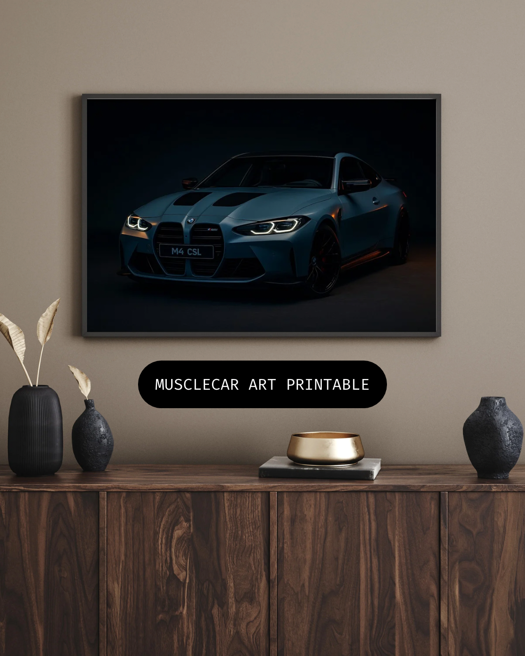 This captivating digital artwork features a blue performance coupe in a dramatic studio setting. Designed to command attention, it’s the perfect addition to high-end spaces, creative offices, or car-themed decor.