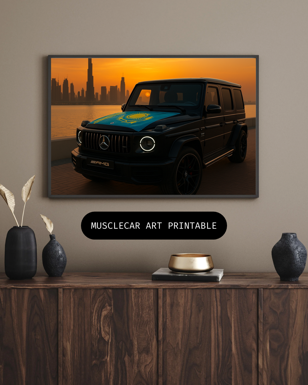Bring luxury and bold identity into your space with this stunning digital art print featuring a black high-end SUV cruising through the golden Dubai desert. Set against a breathtaking skyline and sunset, this piece captures power, pride, and elegance in motion.