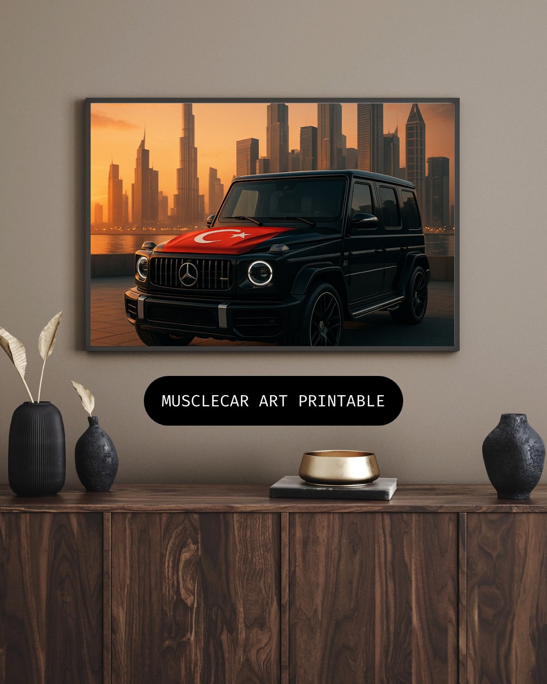 Bring luxury and bold identity into your space with this stunning digital art print featuring a black high-end SUV cruising through the golden Dubai desert. Set against a breathtaking skyline and sunset, this piece captures power, pride, and elegance in motion.